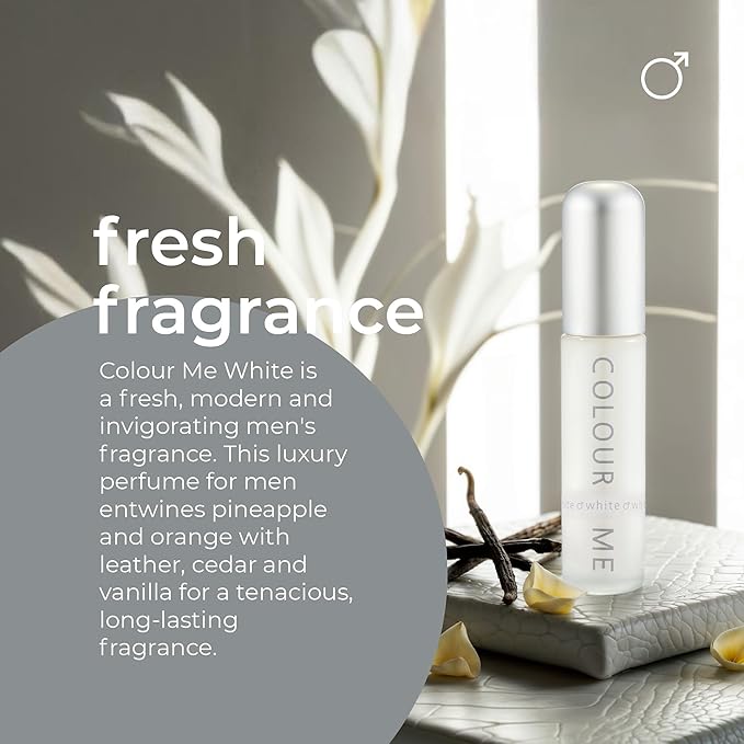 - Fresh and Invigorating: Colour Me White blends bergamot, pineapple, orange, and green apple top notes, creating a refreshing and modern men's cologne. A sophisticated start to men's fragrances.
