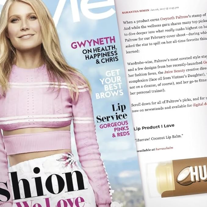 - TWO 4.8g/.17oz Oval Tubes of Coconut Lip Balm packaged in a white HURRAW! branded pillow box. Rich, raw coconut oil enriches the fabulous flavor of this balm and continues to put it at the top of our favorites list. Not too beachy, a little toasty... coconut perfection. Made with certified organic, vegan, and raw ingredients. Hurraw! Lip Balms are certified 100% all natural origin, cruelty, and gluten-free. Non-GMO. Bee, Shea, Soy, and Palm Free.