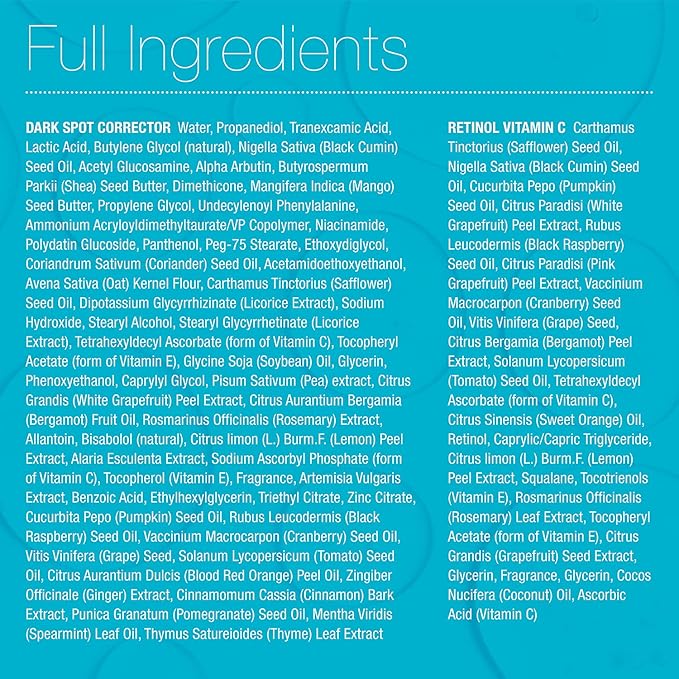 - HIGH LEVELS of CLINICALLY PROVEN INGREDIENTS: Tranexamic Acid, Licorice Extract, Alpha Arbutin, Retinol, Vitamin C, Vitamin E, Lactic Acid, Resveratrol precursor, Citrus Extracts and Herbal Extracts.