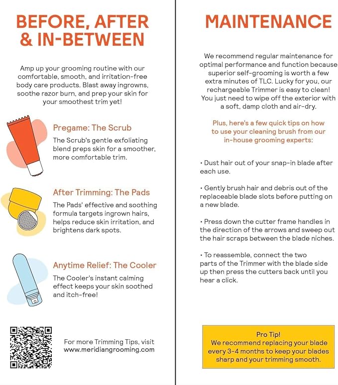- GROOMING MADE SIMPLE: We’re here to take the stress out of self-care. No fluff, no shame—just well-designed tools that work. Whether you’re trimming for comfort, confidence, or clean lines, Meridian’s got your back (and everything else).