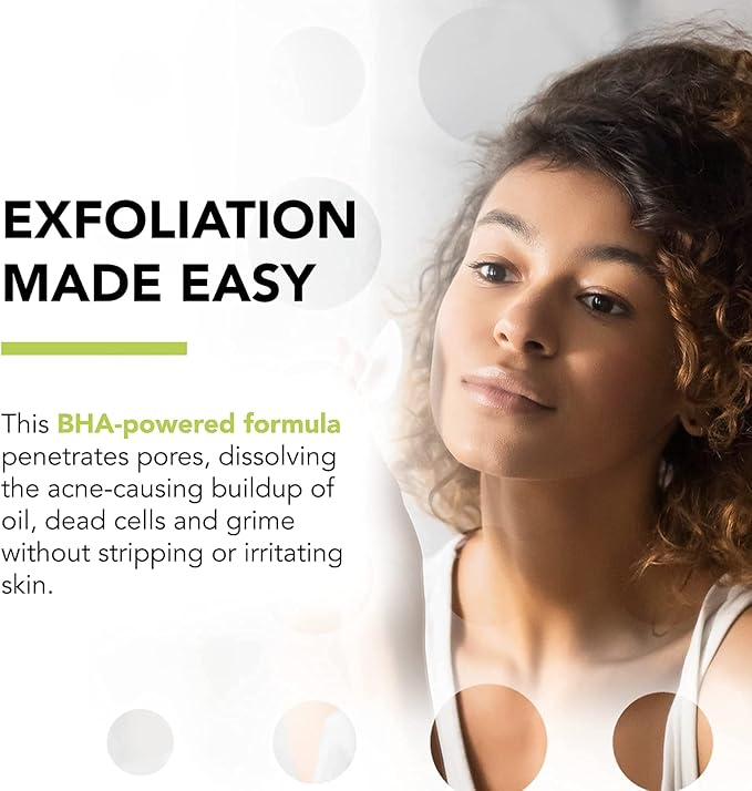 - Exfoliation Made Easy: This BHA-powered formula penetrates pores, dissolving the acne-causing buildup of oil, dead cells and grime without stripping or irritating skin. Keeps blackheads, whiteheads and blemishes at bay. Regular use will lead to a clearer, fresher and more refined complexion.