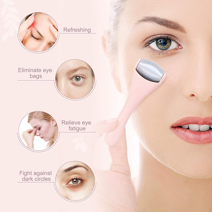 - ICE EYE ROLLER: The eye roller presses the eyes with the freezing effect, removes toxins from the eyes, and significantly improves dark circles and bags under the eyes. When ice eye roller is applied to the temple, it can have a refreshing effect and free you from fatigue caused by study and work.