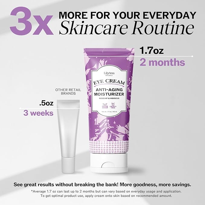 LilyAna Naturals Eye Cream for Dark Circles and Puffiness, Anti Aging Under Eye Cream for Wrinkles and Bags helps Improve Dryness; for Sensitive Skin (Bottle, 1.0 Ounce (Pack of 1))