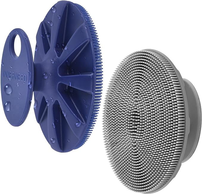 INNERNEED Silicone Face Exfoliating Brush Manual Handheld Facial Cleansing Scrubber Blackhead Remover, Food-Grade Soft Bristle (Dark Blue+Gray)