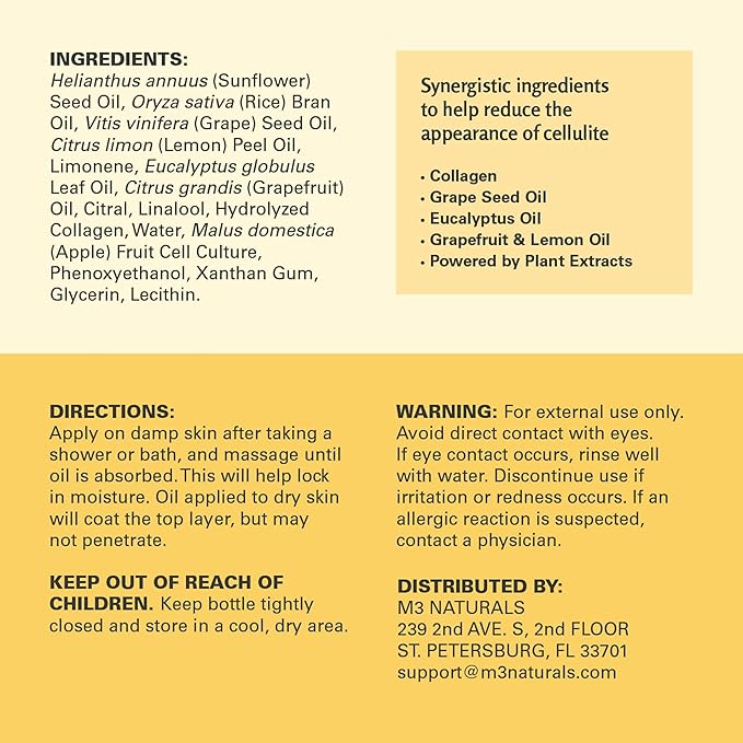 M3 Naturals Firming Body Massage Oil with Collagen & Stem Cell – Helps Smooth The Appearance of Cellulite & Improve Skin Texture – Refreshing Aromatherapy Body Oil for Legs & Full Body – 16 Fl Oz