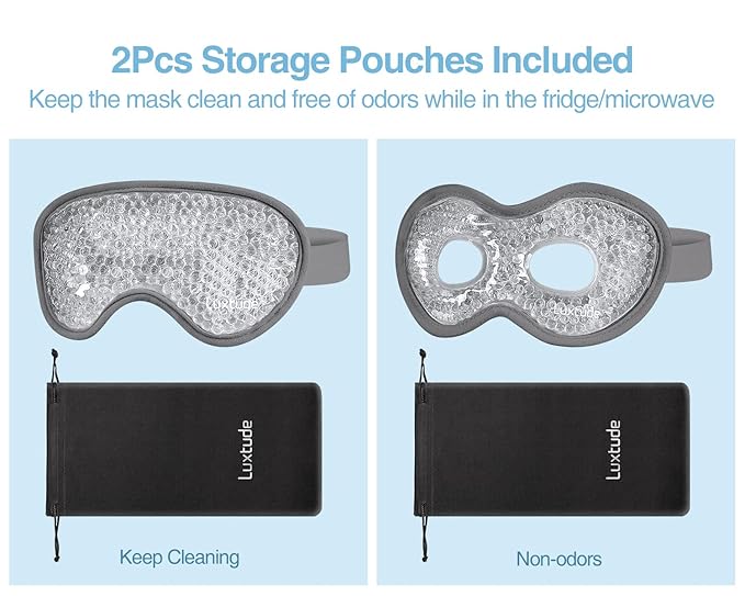 - ✔ ADJUSTABLE & COMFORTABLE: With the stretchable strap and adjustable Velcro, Luxtude frozen eye mask fits all head sizes. Super soft plush backing provides skin friendly and anti-frostbite.
