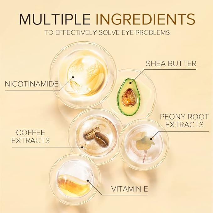 - ✨【ADVANCED FORMULA】Enriched with powerful ingredients 24k gold, nicotinamide, shea butter, peony root extracts, vitamin E, and multiple repairing ingredients to effectively solve eye problems. The active 24k gold has the ability to significantly hydrate your skin, increasing blood circulation, which is widely used as a prestigious skin treatment ingredient.
