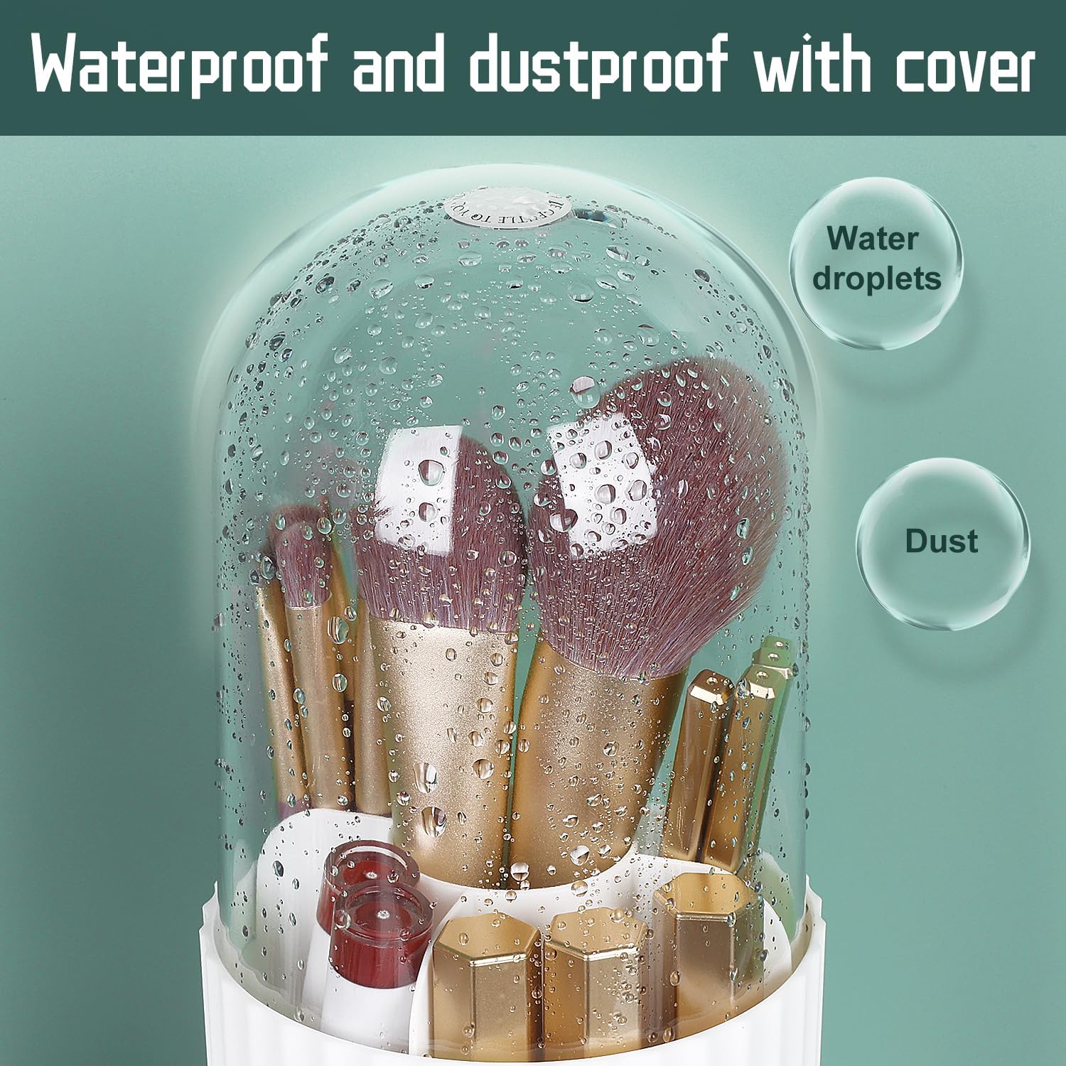- Transparent Circular Lid: clear top cover design safeguard the items stored inside from dust and water droplets while showcasing your distinct and lovely cosmetics