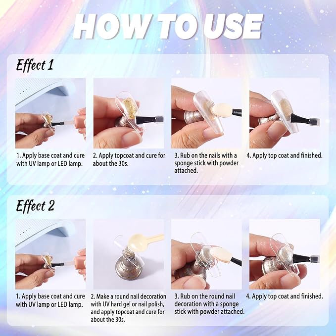 - Wide Application: The shell pearl nail powder is suitable for natural nails, UV gel nails, acrylic extension, poly gel nails, etc. You can make the effects of the mirror, ice transparent, bubble, shell, water ripple, opal, and so on. Perfect for daily use, party, wedding, holiday bash, and nightclubs. The unicorn chrome nail powder is a sparkling shellac nail kit, which is good for nail supplies.