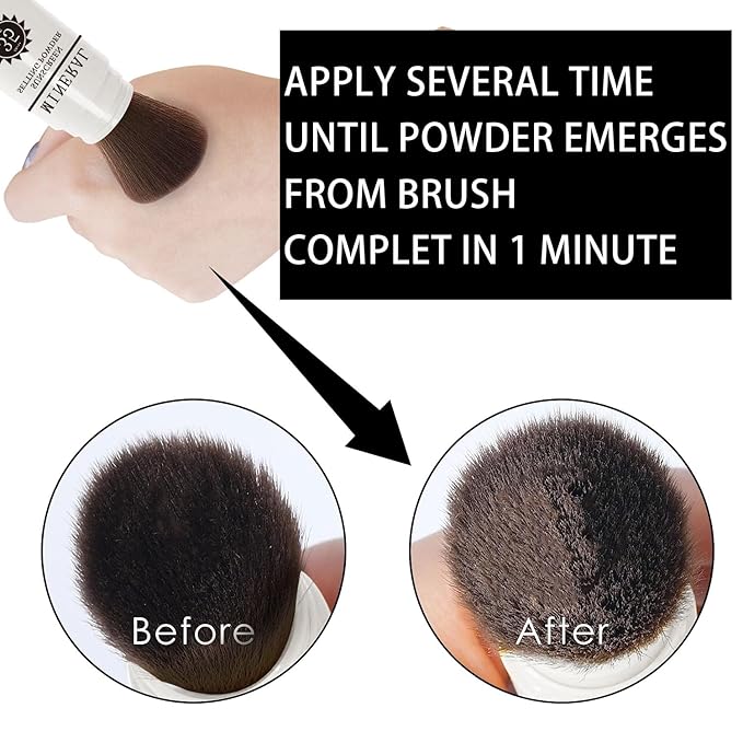 - ✿【Unique Brush Design】Equips with high-density quality brushes dispenses a precise amount of setting powder. After applying makeup, take off the cap, slide down the brush sleeve, brush required setting powder on your face, pull up the plastic sleeve and cover the cap after finished.