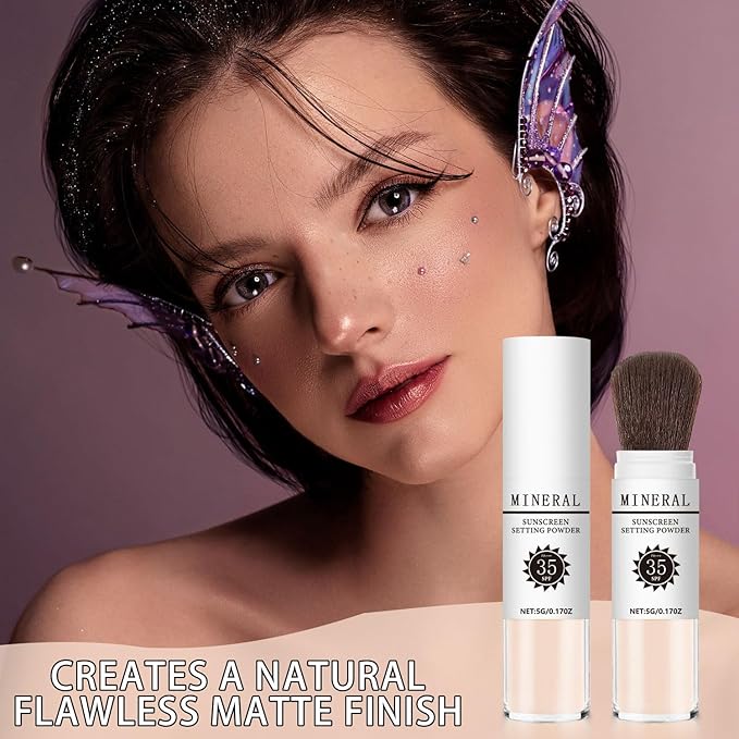 - ✿【Sunscreen Setting Powder】Light breathable mineral powder provides the perfect matte finish, can be worn alone or under, over, or with your existing makeup routine for smooth, comfortable, and flawless sweat and water-resistant SPF35 coverage.