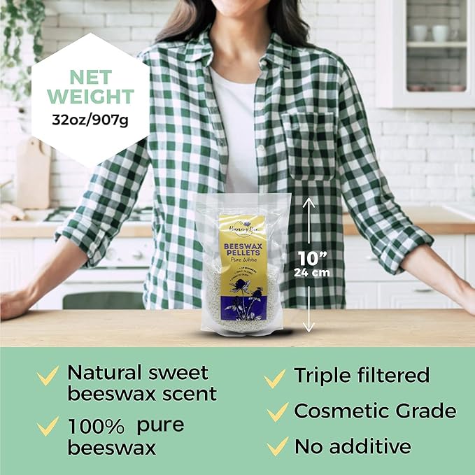 - 🐝 [Premium Quality] Our beeswax is triple-filtered to ensure its purity, making it the perfect choice beeswax food grade and beeswax for skin care products. Its natural scent make it a unique and sustainable alternative to traditional wax products【Why should you use this?】Our premium quality natural beeswax pallets and bees wax melts are handcrafted to perfection, providing a long-lasting and authentic aroma for your home or personal projects