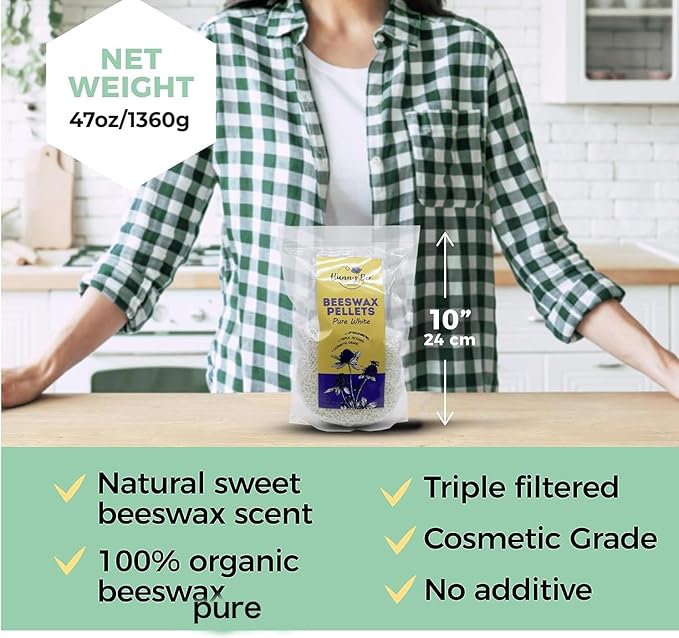 - 🐝 [Premium Quality] Our beeswax is triple-filtered to ensure its purity, making it the perfect choice beeswax food grade and beeswax for skin care products. Its natural scent make it a unique and sustainable alternative to traditional wax products【Why should you use this?】Our premium quality natural beeswax pallets and bees wax melts are handcrafted to perfection, providing a long-lasting and authentic aroma for your home or personal projects