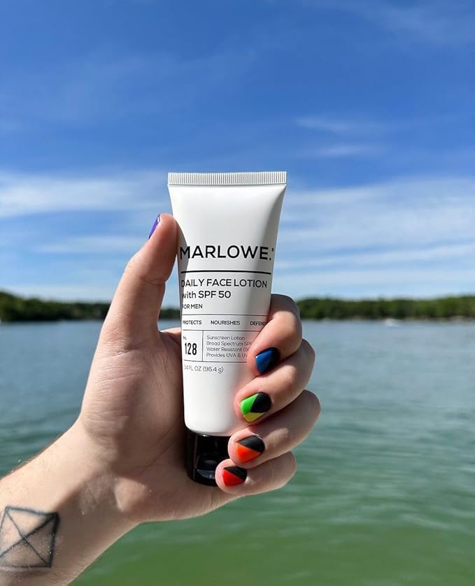 MARLOWE. Mens Skin Care Set, No. 204 Daily Essential Face Kit, No. 121 Facial Cleanser, No. 123 Facial Moisturizer, No. 127 Eye Cream, No. 128 Daily Face Lotion with SPF 50, Great Gift for Men