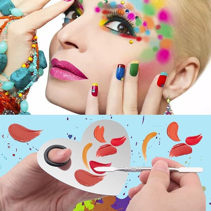 - 【WIDE APPLICATION】The makeup mixing palettes and spatulas can be used to mix foundation, cream, lip or eye shadow, nail color, concealer, pigment, etc, great for makeup artists, DIY unique makeup colo