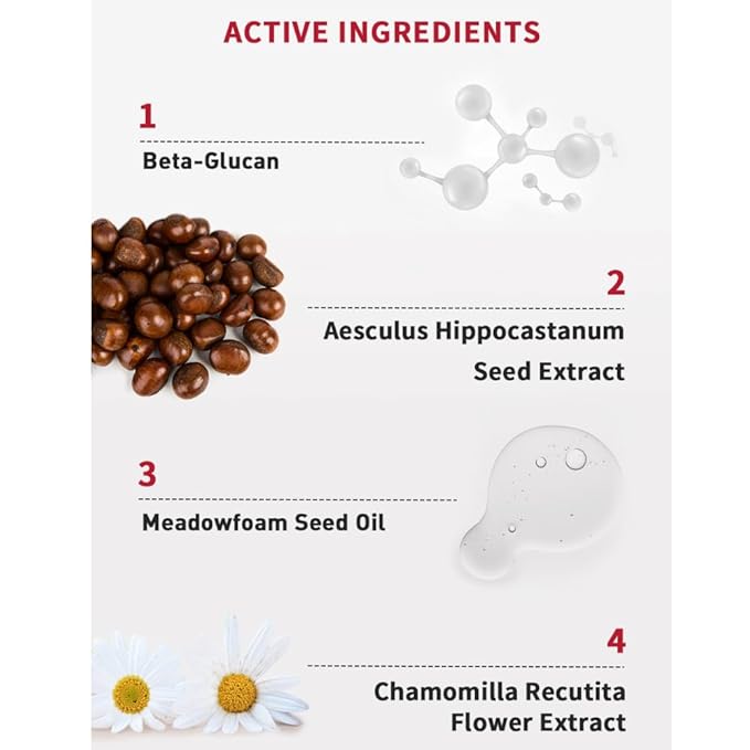 - Active Ingredients : Aloe Barbadensis Leaf Juice Powder, Horse Chestnut Seed Extract, Meadowfoam Seed Oil, Hydrogenated Horse Fat Aloe Barbadensis Leaf Juice Powder, Horse Chestnut Seed Extract, Meadowfoam Seed Oil, Hydrogenated Horse Fat