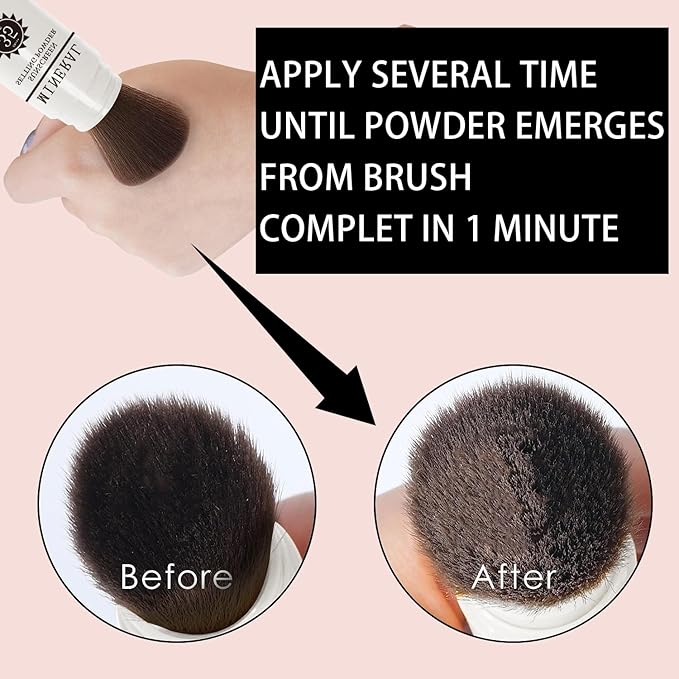 - ✿【Unique Brush Design】Equips with high-density quality brushes dispenses a precise amount of setting powder. After applying makeup, take off the cap, slide down the brush sleeve, brush required setting powder on your face, pull up the plastic sleeve and cover the cap after finished.