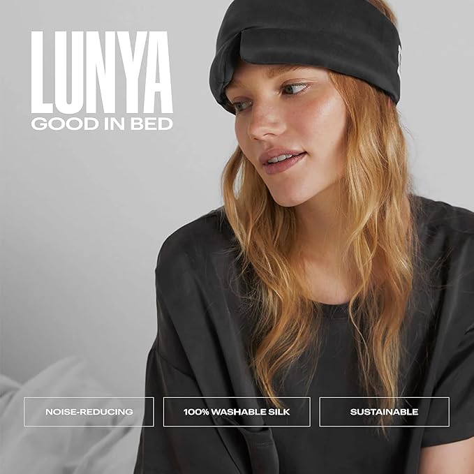 Lunya Sleep Mask with Box - Washable Silk Sleeping Mask and Headband for Beauty Routines - Thermoregulating Comfort for Restful Nights - Silk Eye Mask for Women - Large - Meditative Grey
