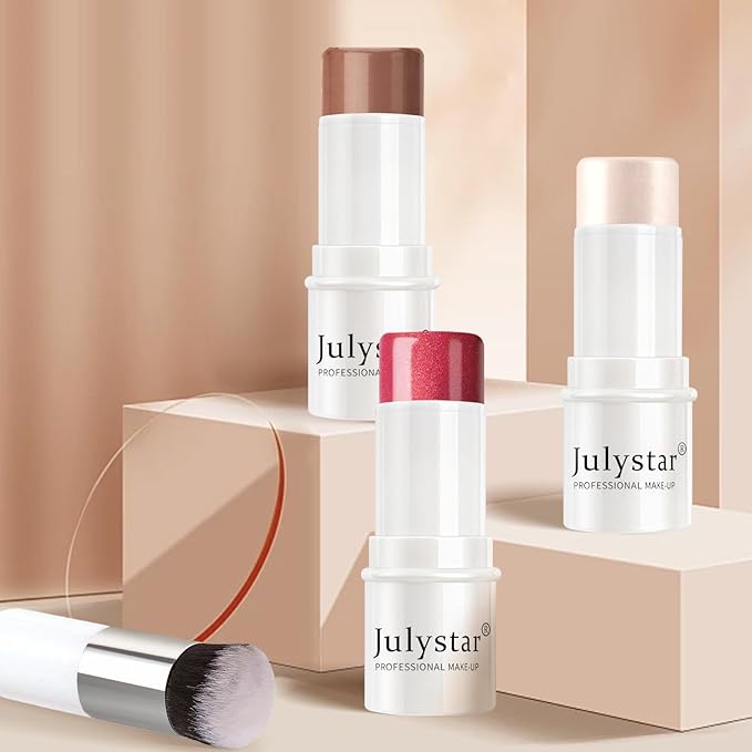 - 【3Pcs Contour Makeup Set】This set contains a contour stick, a blush stick and a highlighter stick. It also includes a big brush that are super smooth and blendable, working together to create a three-dimensional facial contour for a fresh, glowing natural look. They suit most skin tones and skin types. Make it a try and you will fall in love with it.