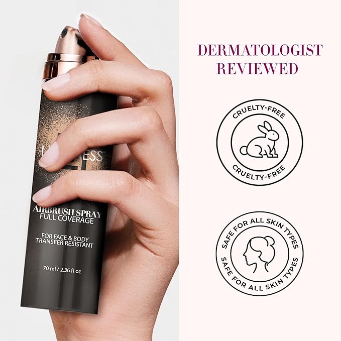 - Full Coverage Airbrush Finish: The LUMINESS Airbrush Spray Full Coverage Foundation delivers lightweight, buildable coverage for face and body, effortlessly concealing imperfections and providing a natural, airbrushed finish that lasts all day. 2.36 fl oz. Shade 120 โ Light Deep