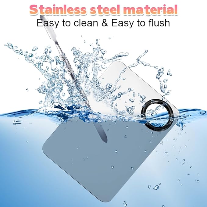 - 💄【High Quality】Our makeup mixing palettes is made of high quality stainless steel material, smooth texture, easy to clean, foundation palette is wear-resistant and scratch-resistant, comfortable grip, medium size, smooth polished edges don't hurt your hands, suitable for a variety of makeup use
