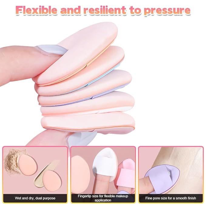 - 💄【Mixed Color Thumb Puff】This mini powder puff contains six different colors of thumb puffs, individual size of 3.9 cm/1.53 in x 3.1 cm/1.22 in, with a teardrop-shaped design, flawless concealer, the strength of a good control, can be used wet or dry, suitable for concealer, air cushion, loose powder, powder, etc., so that the puff as flexible as the fingers