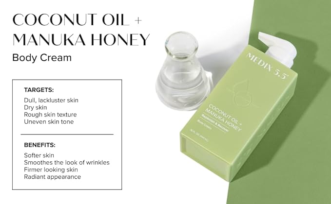 - DEEP SKIN MOISTURIZING โ This Coconut Oil + Manuka Honey visual repair body cream & face lotion works as an effective everyday moisturizer that also works to diminish the appearance of scars, wrinkles, dry skin, fine lines, hyperpigmentation, dark spots, sagging skin, & stretch marks. Nourish, hydrate, & plump your skin for a healthier, fuller, & younger appearance while also improving your skins elasticity all at once.