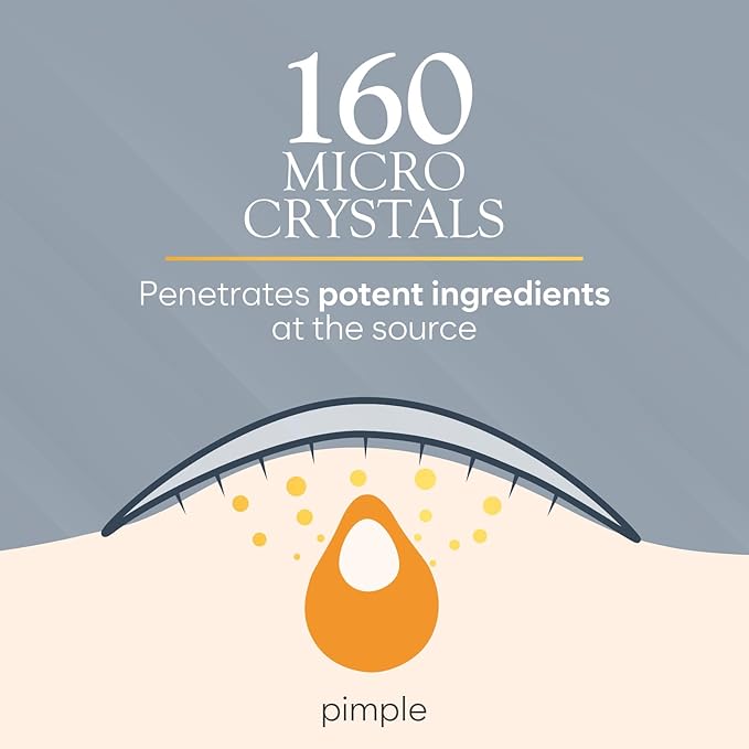 - Advanced Microcrystal Technology: Our 16mm large cystic acne patches feature 160 self-dissolving microcrystals, providing targeted care for blemish-prone skin. The microcrystals gradually dissolve, infusing ingredients such as Salicylic Acid and Hyaluronic Acid to help support clearer-looking skin.
