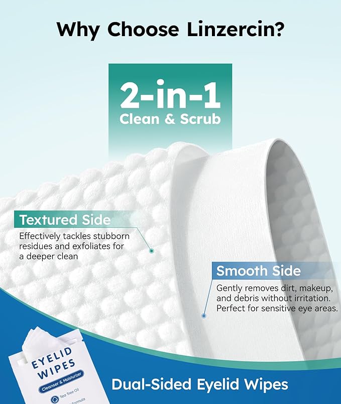 - 【Versatile Uses】Ideal for a variety of uses, these tea tree oil eyelid cleansing wipes not only help remove dirt, debris, and makeup residues from your eyelids but also provide soothing relief for conditions such as blepharitis and other of eye irritation. Perfect for daily cleansing and refreshing tired eyes, they are an essential part of your eye care routine. For those suffering from dry eyes, our eye wipes for dry eyes offer gentle yet effective hydration and comfort, making them a key component in any dry eye relief products collection.