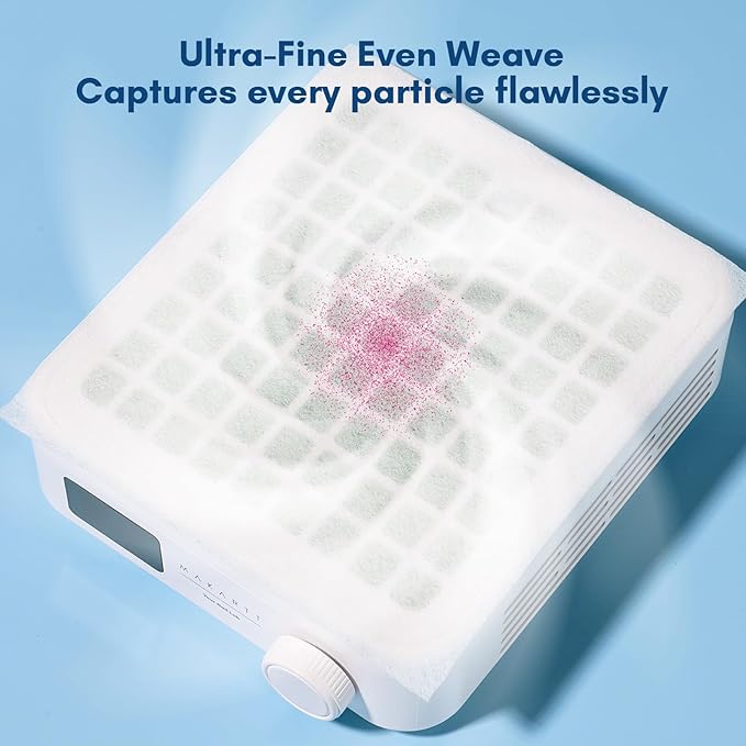 - High-Quality Filter Paper:The package contains 100 pieces of nail art dust removal filter paper. A sufficient number of filter papers can perfectly meet all your needs for nail art industry and home use. The product size is: 9.84 IN*9.05 IN*1.77 IN, which can be cut according to the size you need